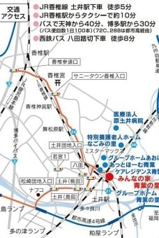 - みんなの家三苫駅前は、原土井病院グル一プ施設です。定期的な受診や往診、緊急時の入院対応等、安心して暮らせる医療サービスの提供が可能です。
